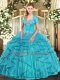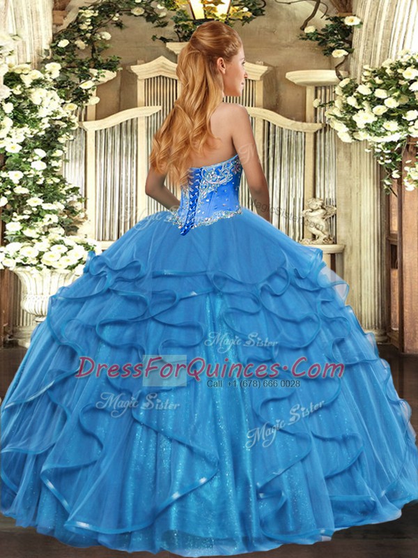 Beading and Ruffles Quinceanera Gowns Aqua Blue Lace Up Sleeveless Floor Length