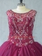 Best Selling Floor Length Burgundy Quinceanera Dress Scoop Sleeveless Lace Up