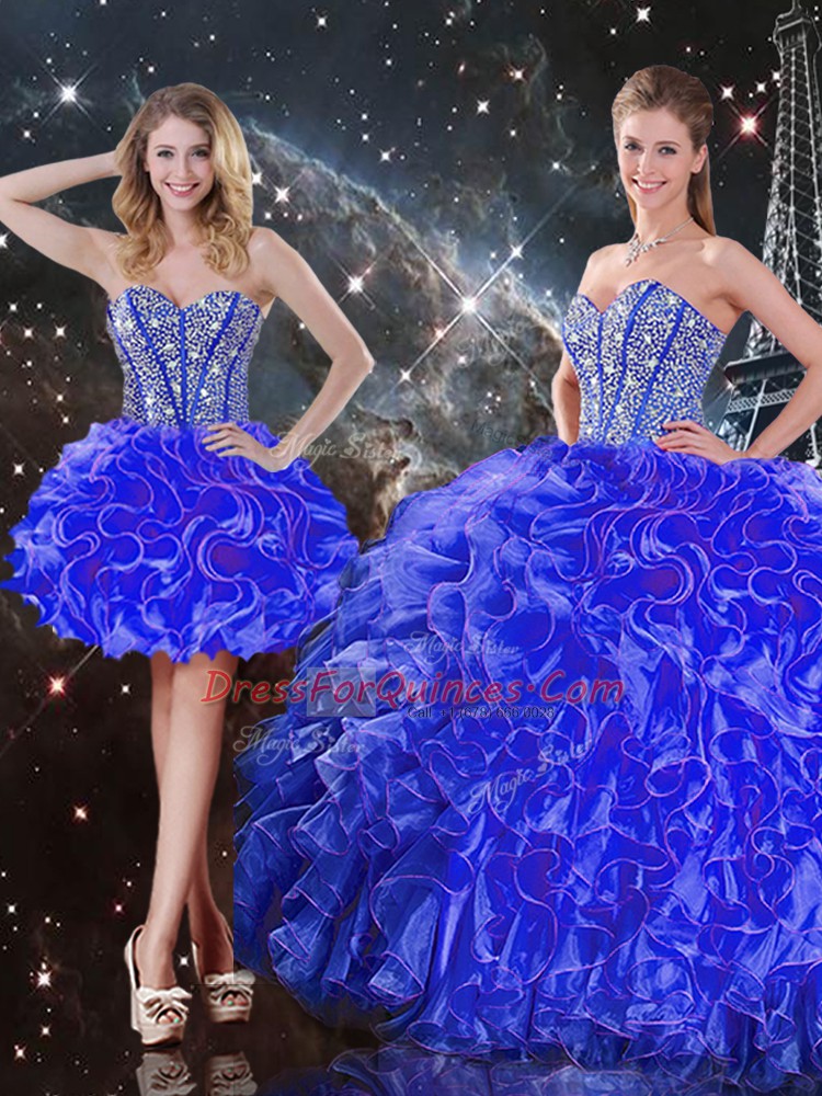 Best Sleeveless Beading and Ruffles Lace Up Quince Ball Gowns