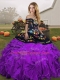 Black And Purple Sleeveless Floor Length Embroidery and Ruffles Lace Up Quinceanera Gowns