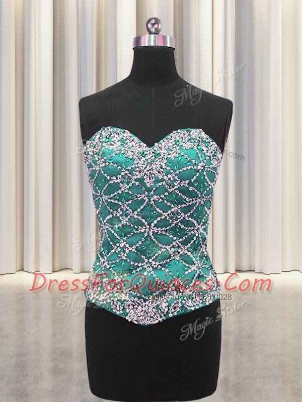 Captivating Three Piece Teal Tulle Lace Up Ball Gown Prom Dress Sleeveless Floor Length Beading and Sequins