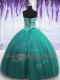 Cheap Sleeveless Tulle Floor Length Lace Up Quinceanera Gowns in Turquoise with Beading