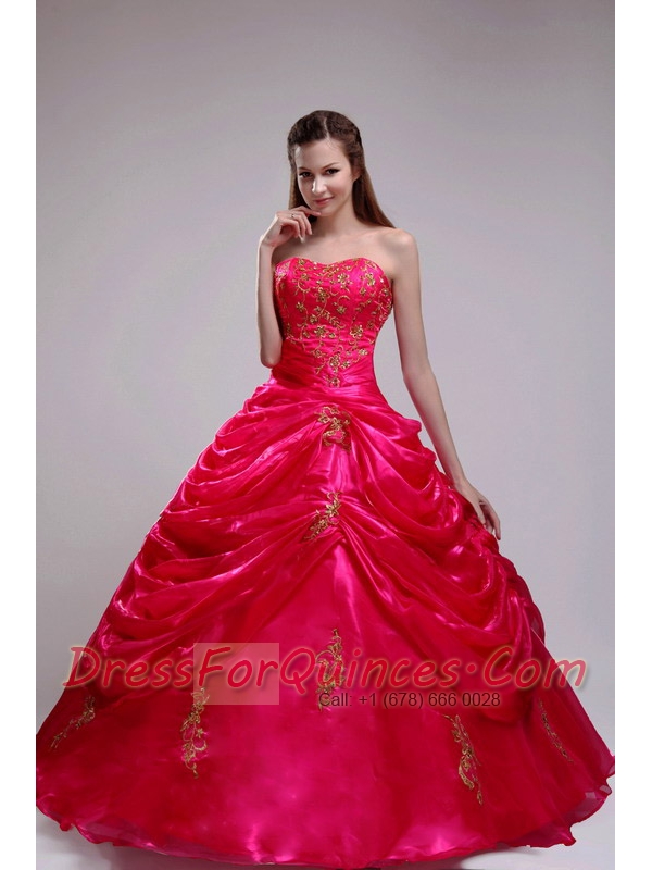 Classical Red Sleeveless Floor-length Lace-up Applqiues Orangza Quinceanera Dress