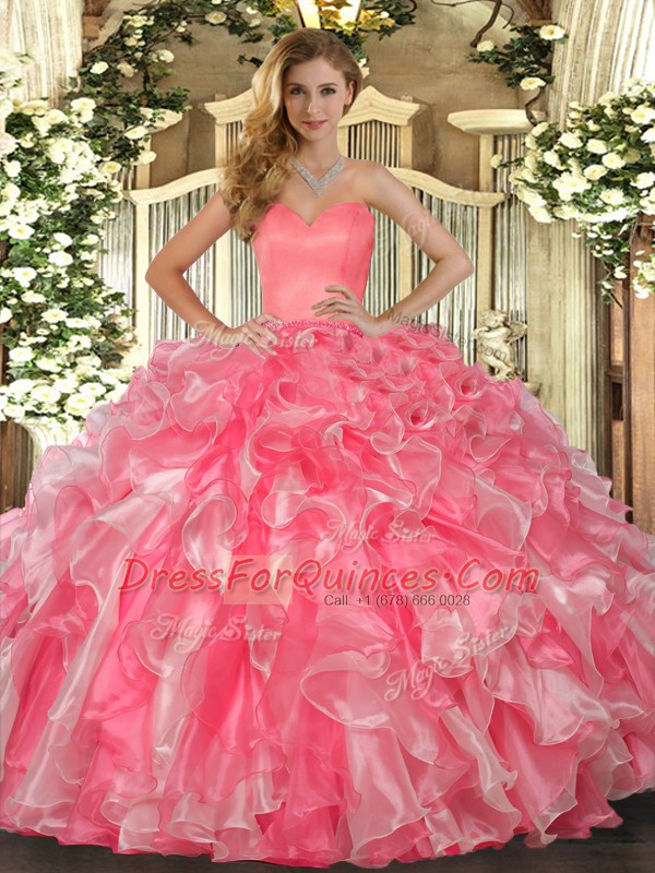 Custom Design Sweetheart Sleeveless Lace Up Quinceanera Dresses Watermelon Red Organza