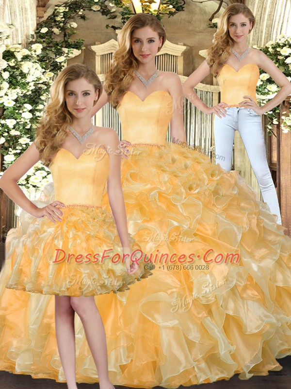Custom Made Floor Length Gold Sweet 16 Dresses Sweetheart Sleeveless Lace Up