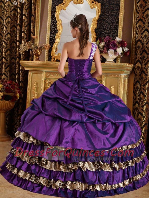 Dark Purple Ball Gown One Shoulder Floor-length Taffeta and Leopard 2014 Spring Quinceanera Dresses
