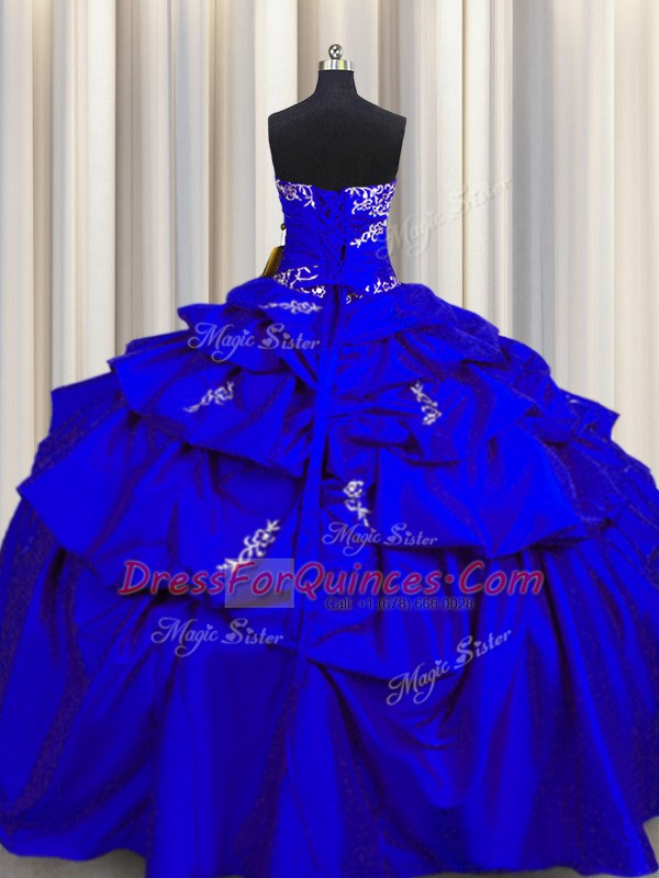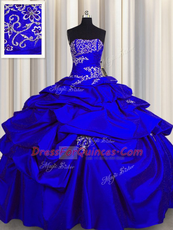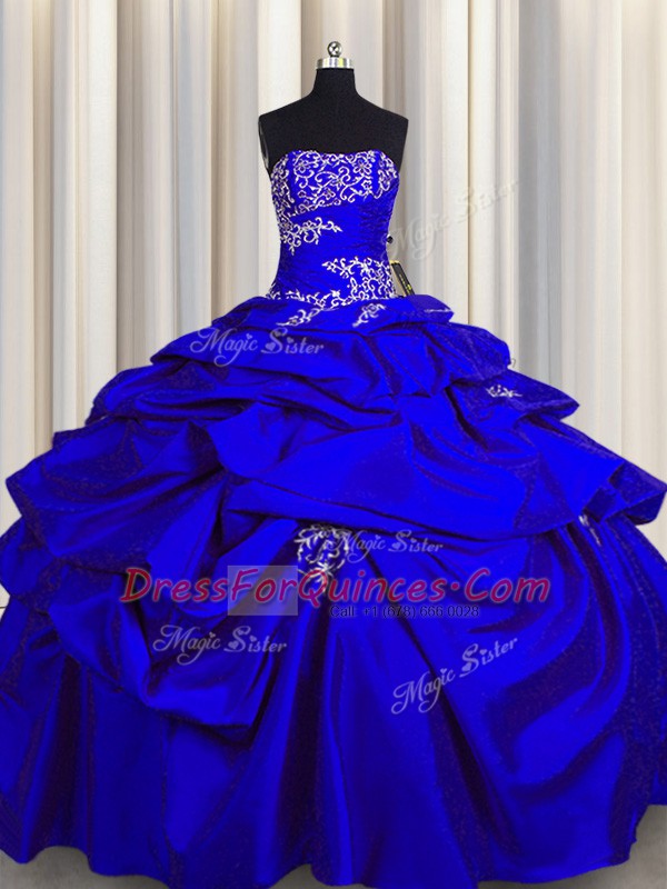 Decent Royal Blue Lace Up Strapless Appliques and Pick Ups Quinceanera Dress Taffeta Sleeveless