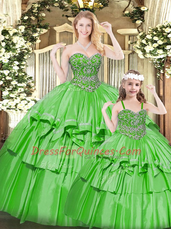 Designer Green Lace Up Sweetheart Beading and Ruffled Layers Quince Ball Gowns Organza Sleeveless