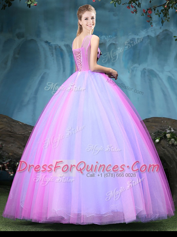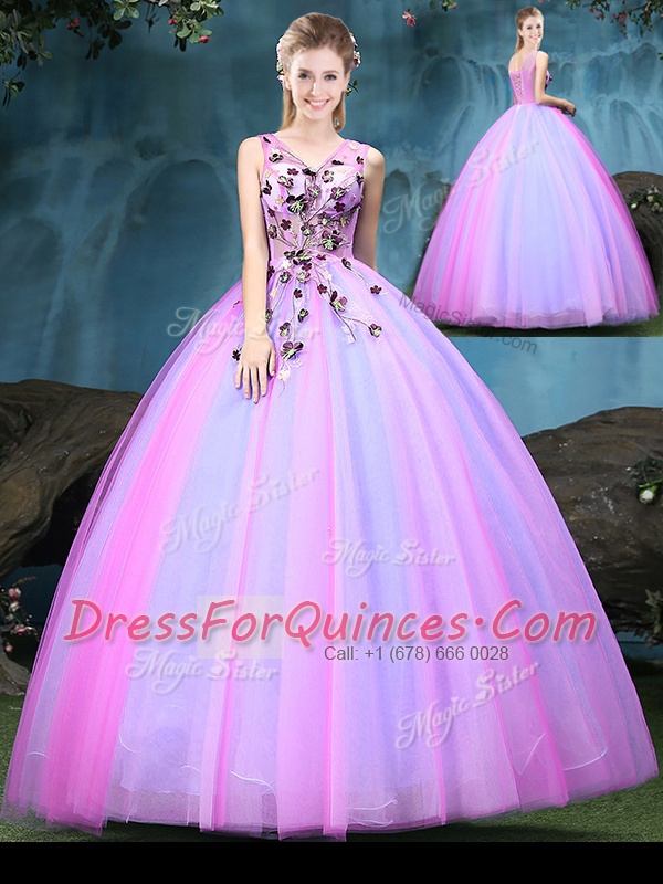 Dramatic Tulle Sleeveless Floor Length Quinceanera Gowns and Appliques