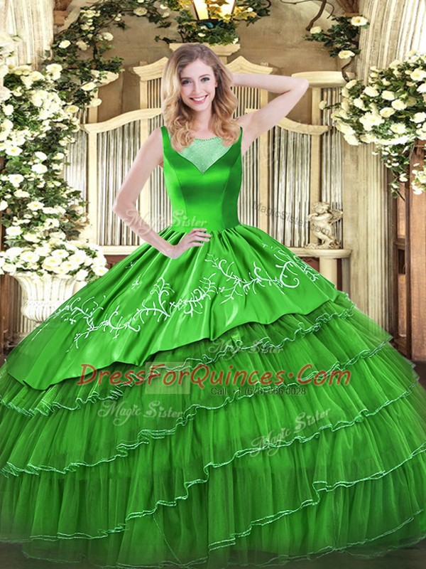 Enchanting Green Ball Gowns Organza Scoop Sleeveless Beading and Embroidery Floor Length Side Zipper Vestidos de Quinceanera