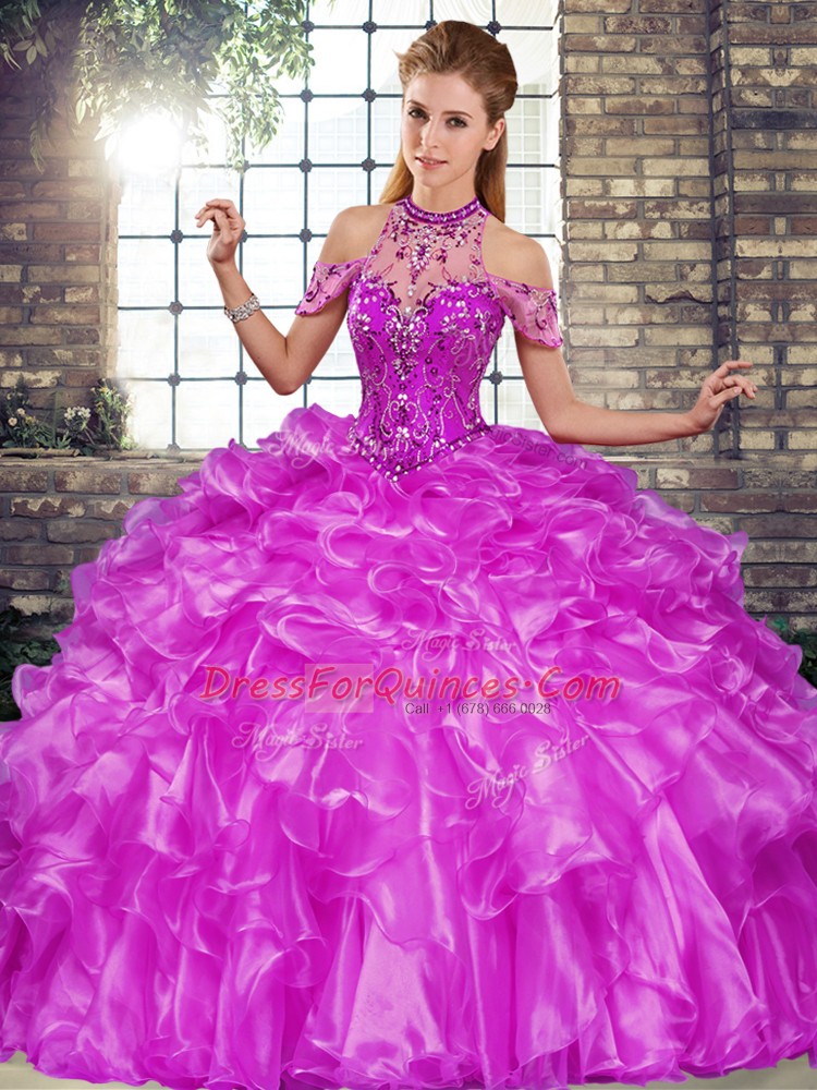 Exquisite Purple Sleeveless Beading and Ruffles Floor Length 15th Birthday Dress