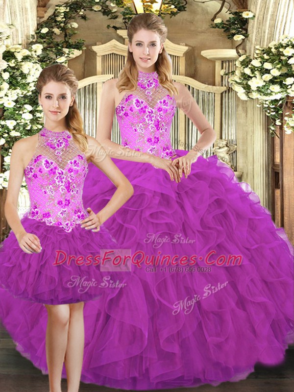 Eye-catching Sleeveless Embroidery and Ruffles Lace Up Quinceanera Dresses