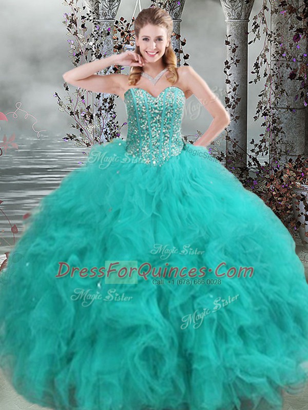 Fabulous Floor Length Turquoise Quinceanera Dresses Organza Sleeveless Beading and Ruffles