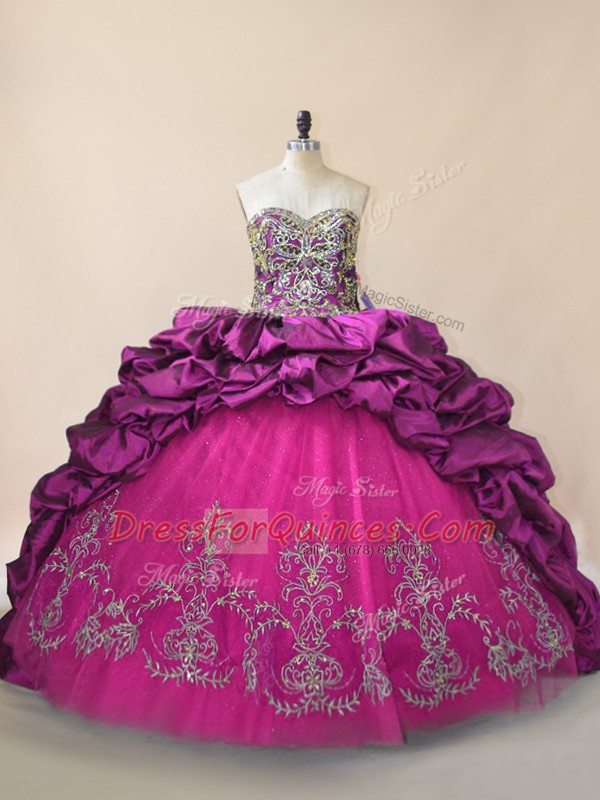 Fancy Lace Up Sweet 16 Dress Purple for Sweet 16 and Quinceanera with Beading and Pick Ups Brush Train
