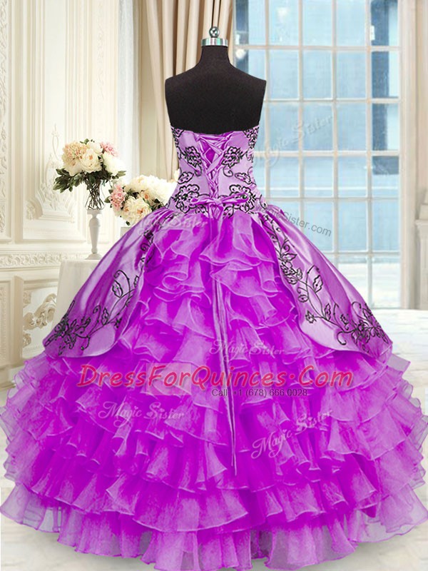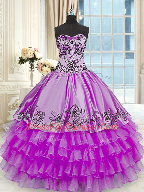 Fantastic Sweetheart Sleeveless Organza and Taffeta Vestidos de Quinceanera Beading and Embroidery and Ruffled Layers Lace Up