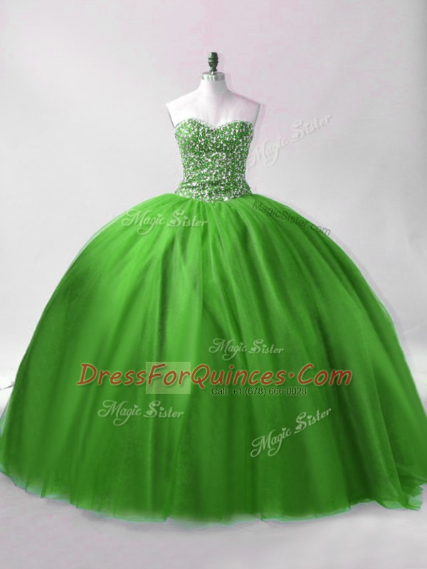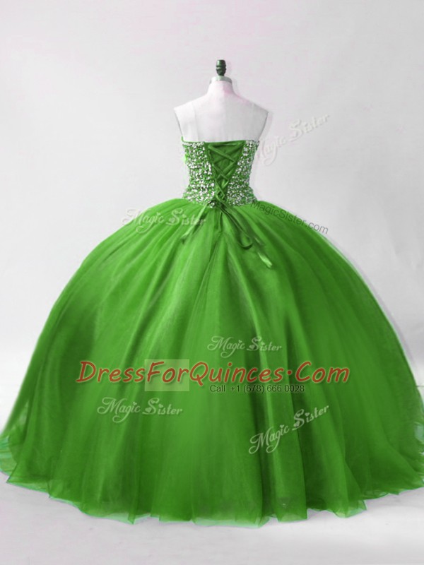 Fashionable Green Lace Up Sweet 16 Dress Beading Sleeveless Floor Length