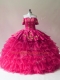 Flare Ball Gowns Vestidos de Quinceanera Fuchsia Off The Shoulder Organza Sleeveless Floor Length Lace Up