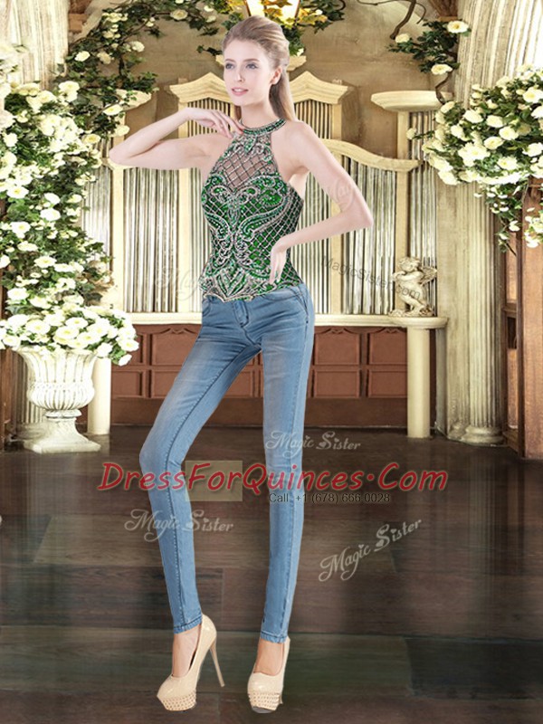 Floor Length Dark Green 15 Quinceanera Dress High-neck Sleeveless Lace Up