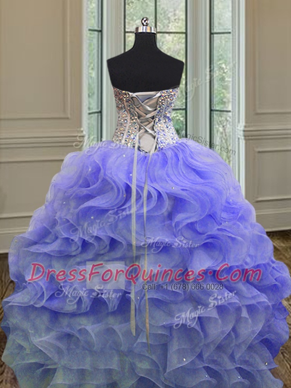 Free and Easy Lavender Sleeveless Beading and Ruffles Floor Length Sweet 16 Dresses