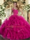 Fuchsia Lace Up Halter Top Ruffles Vestidos de Quinceanera Tulle Sleeveless