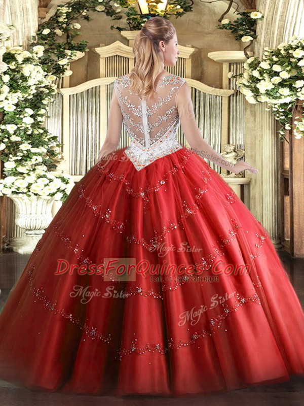 Fuchsia Quinceanera Dresses Military Ball and Sweet 16 and Quinceanera with Beading and Appliques Scoop Sleeveless Zipper