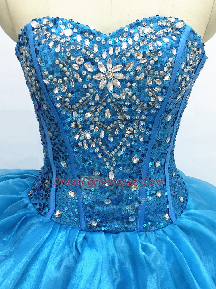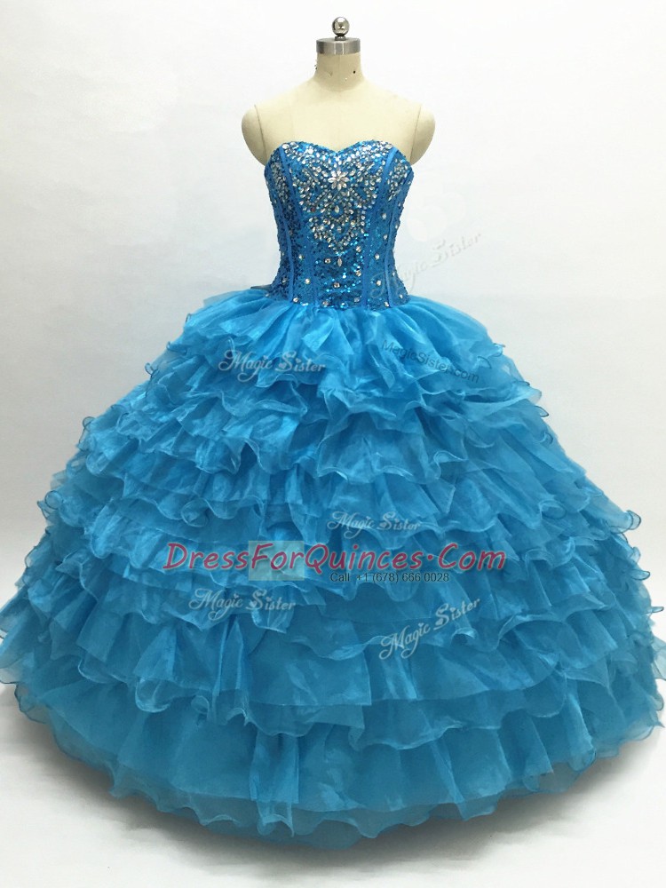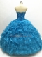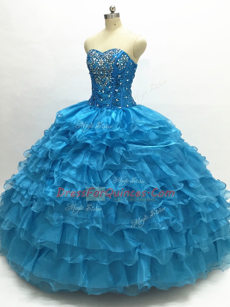 Glamorous Beading and Ruffles Sweet 16 Dress Teal Lace Up Sleeveless Floor Length