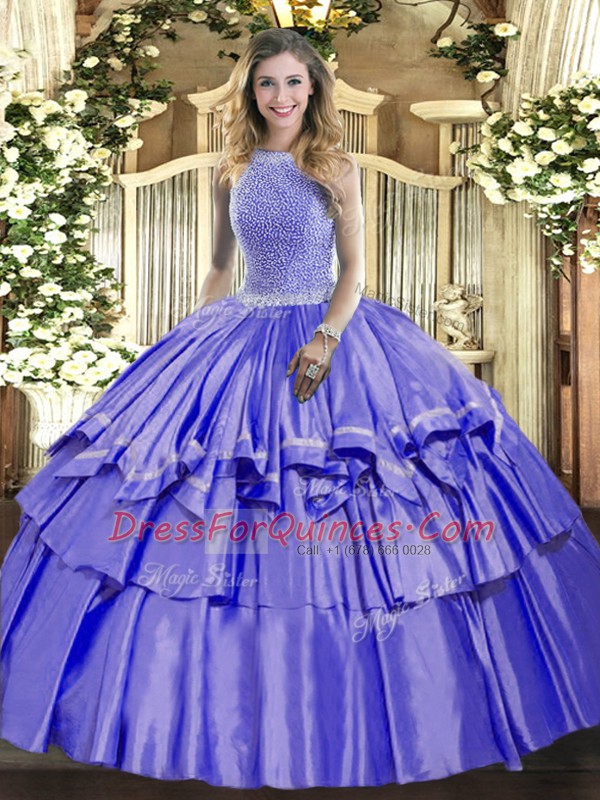 Glorious Beading and Ruffled Layers Quinceanera Gowns Lavender Lace Up Sleeveless Floor Length