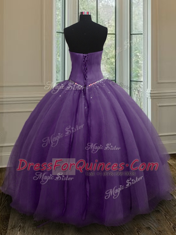 Glorious Floor Length Ball Gowns Sleeveless Purple Vestidos de Quinceanera Lace Up