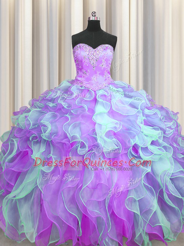 Glorious Sleeveless Lace Up Floor Length Beading and Appliques and Ruffles Quince Ball Gowns