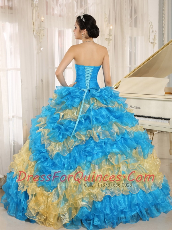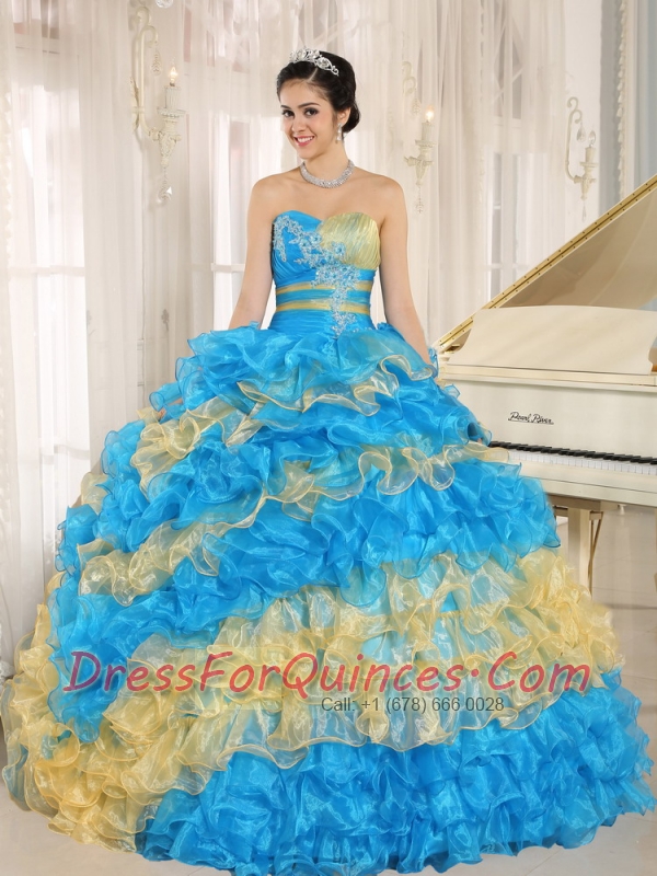 Gorgeous Sweetheart Stylish Multi-color Ruffles With Appliques Quinceanera Dress