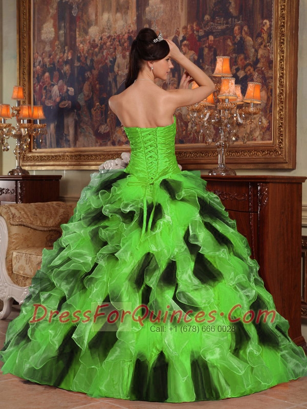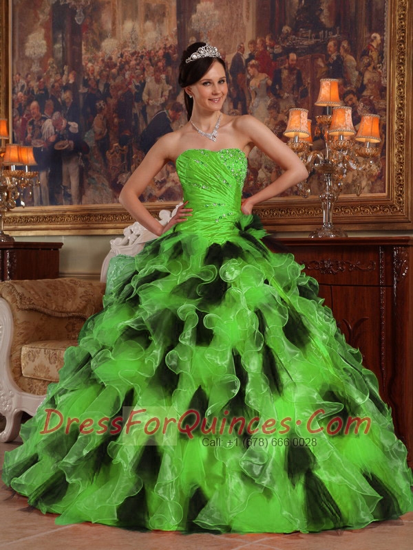 Green and Black Organza Ball Gown Strapless Floor-length 2014 Spring Quinceanera Dresses