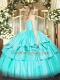 Green Quinceanera Gown Military Ball and Sweet 16 and Quinceanera with Ruffled Layers Spaghetti Straps Sleeveless Zipper