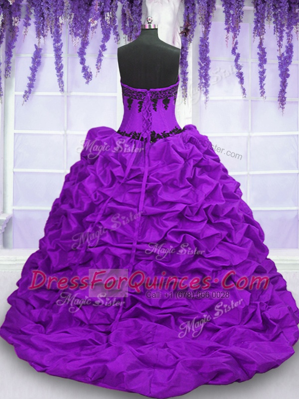 Hot Sale Sleeveless Sweep Train Appliques and Pick Ups Lace Up Sweet 16 Dresses