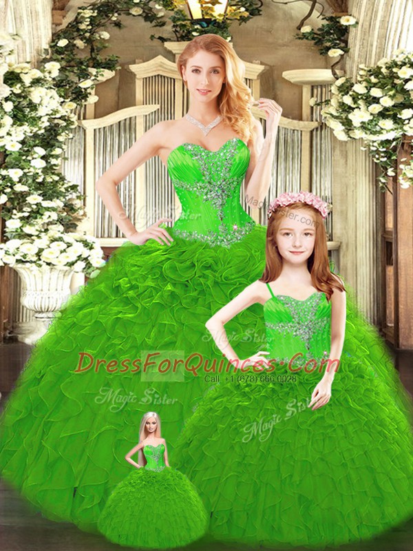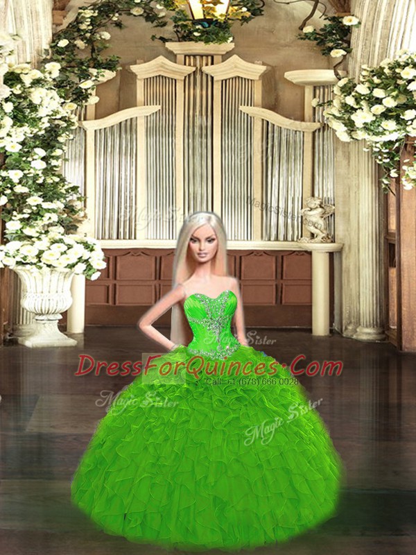 Hot Selling Floor Length Green Sweet 16 Quinceanera Dress Tulle Sleeveless Beading and Ruffles