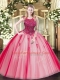 Hot Selling Floor Length Red Vestidos de Quinceanera Tulle Sleeveless Beading
