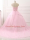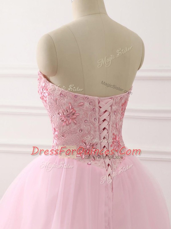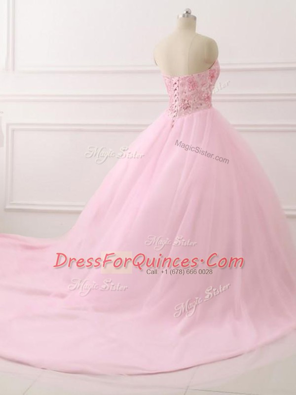 Ideal Baby Pink Sleeveless Tulle Brush Train Lace Up Quinceanera Dress for Military Ball and Sweet 16 and Quinceanera