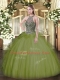 Latest Olive Green Sleeveless Tulle Lace Up Sweet 16 Dress for Sweet 16 and Quinceanera