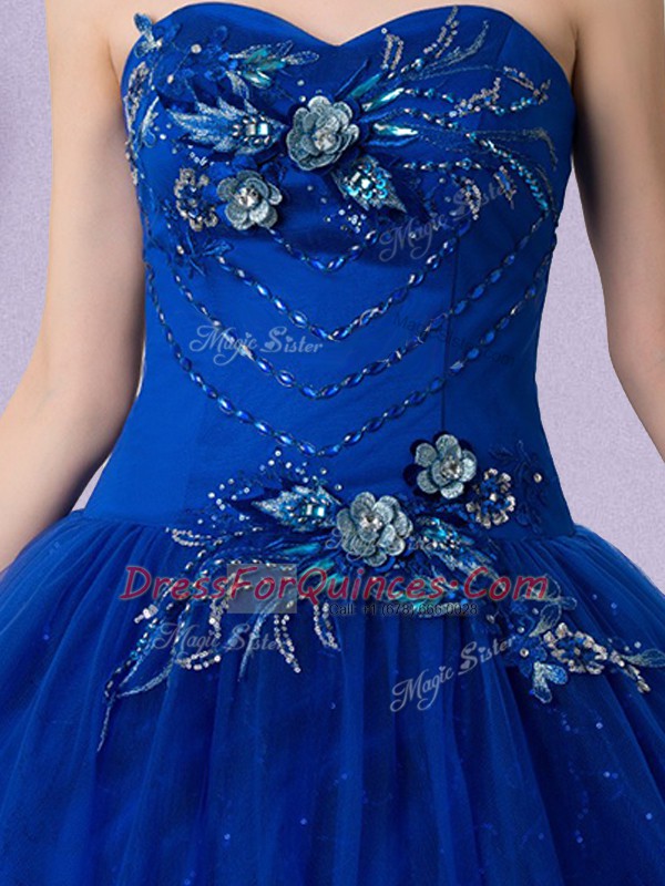 Latest Royal Blue Sleeveless Beading and Appliques Floor Length Sweet 16 Dresses