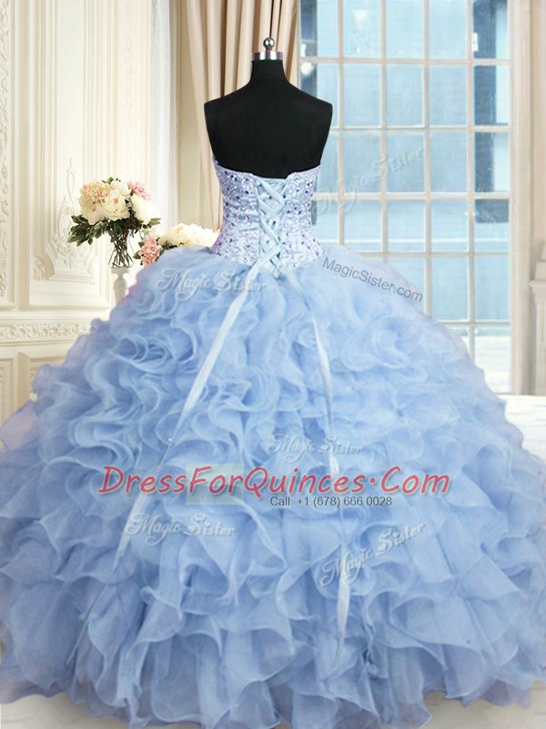 Light Blue Sleeveless Beading and Ruffles Floor Length Sweet 16 Dress