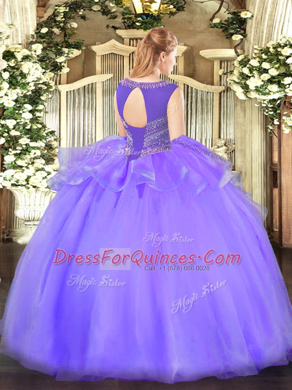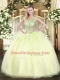 Light Yellow Scoop Neckline Beading Sweet 16 Dresses Sleeveless Lace Up