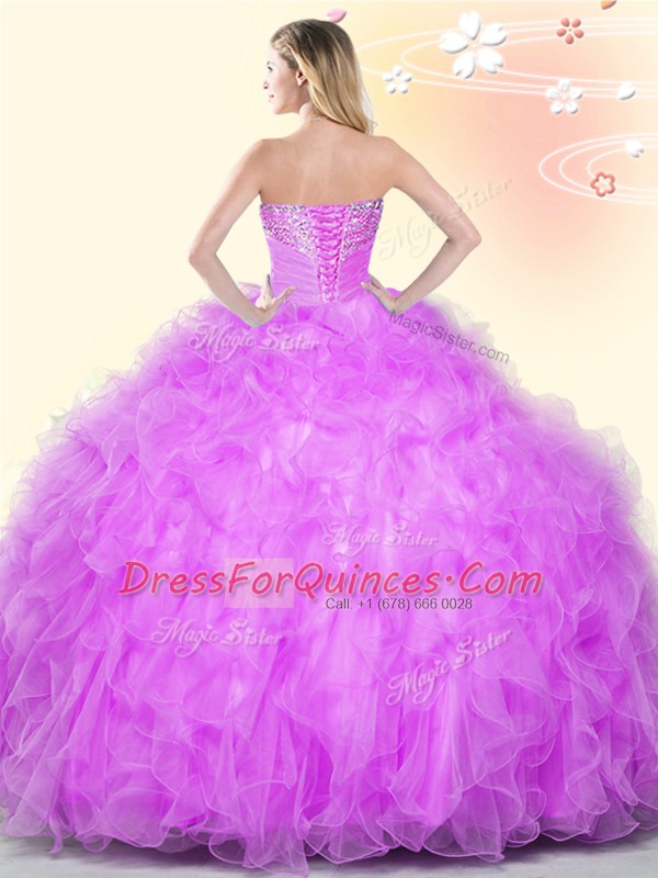 Lilac 15 Quinceanera Dress Military Ball and Sweet 16 and Quinceanera and For with Beading and Appliques and Ruffles Sweetheart Sleeveless Lace Up