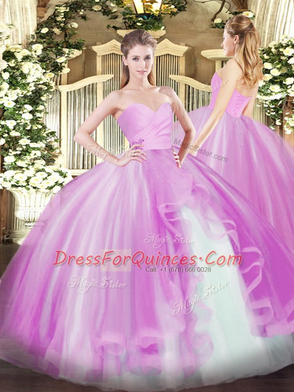 Lilac Ball Gowns Tulle Sweetheart Sleeveless Ruffles Floor Length Lace Up 15th Birthday Dress