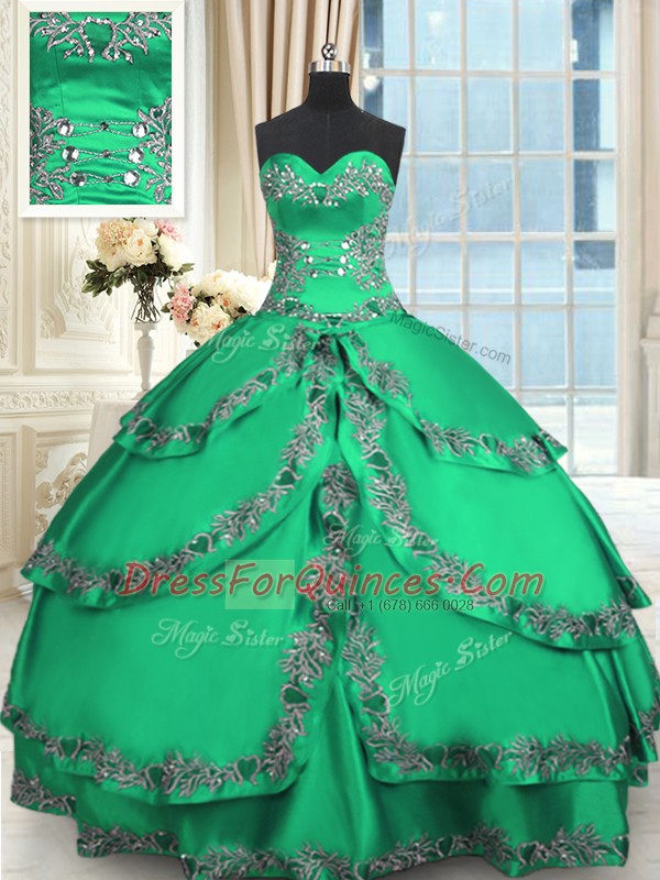 Lovely Ruffled Ball Gowns Quinceanera Gowns Turquoise Sweetheart Taffeta Sleeveless Floor Length Lace Up