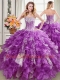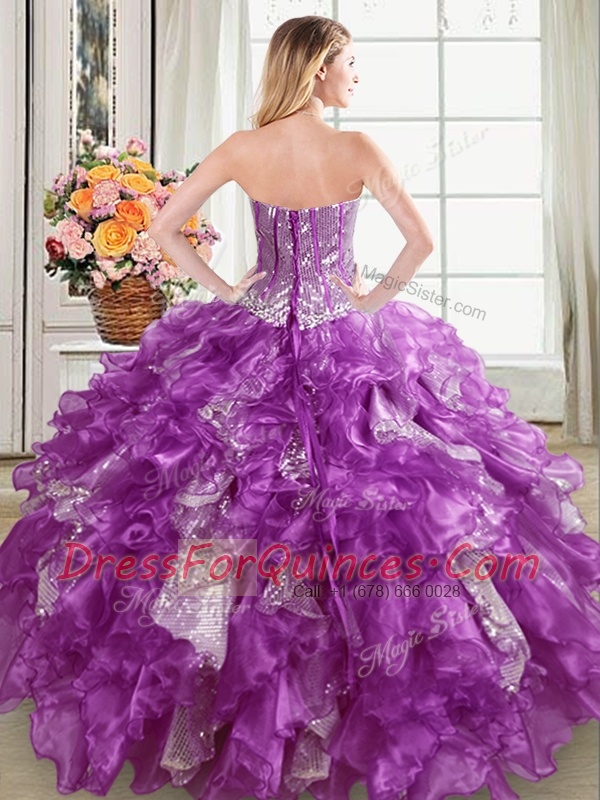 Luxury Sweetheart Sleeveless Sweet 16 Dresses Floor Length Beading and Ruffles and Sequins Purple Organza