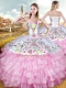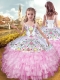 Modern Sleeveless Lace Up Floor Length Embroidery and Ruffled Layers Quinceanera Gown