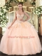 Modest Floor Length Peach Quince Ball Gowns Organza Sleeveless Beading