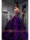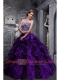 Modest Purple Sweetheart Floor-length Zebra and Organza Quinceanera Dress With Ruffles and Beading