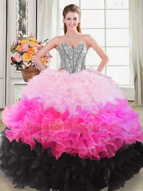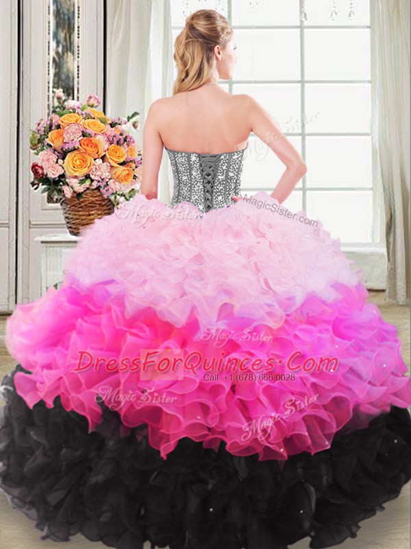 Multi-color Ball Gowns Sweetheart Sleeveless Organza Floor Length Lace Up Beading and Ruffles Quinceanera GownMulti-color Ball Gowns Sweetheart Sleeveless Organza Floor Length Lace Up Beading and Ruffles Quinceanera GownMulti-color Ball Gowns Sweetheart Sleeveless Organza Floor Length Lace Up Beading and Ruffles Quinceanera Gown