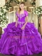 New Style Purple Sleeveless Organza Lace Up Ball Gown Prom Dress for Military Ball and Sweet 16 and Quinceanera