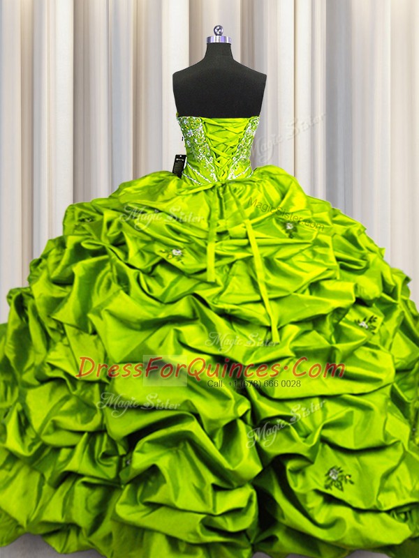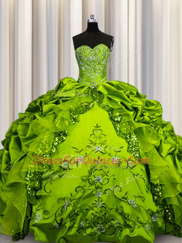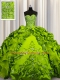 Olive Green Lace Up Quinceanera Dress Beading and Embroidery and Ruffles and Sequins and Pick Ups Sleeveless Floor Length